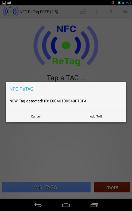 1.首先開啟手機的nfc功用,再來點開 nfc retag free,會看到如下畫面